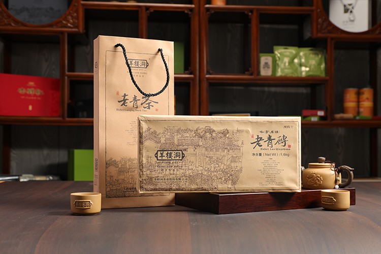 采用三年以上老青茶原料,磚面為羊樓洞品牌標(biāo)志,光滑、棱角整齊,緊結(jié)平整,紋理清晰,湯色橙紅、香氣純正。